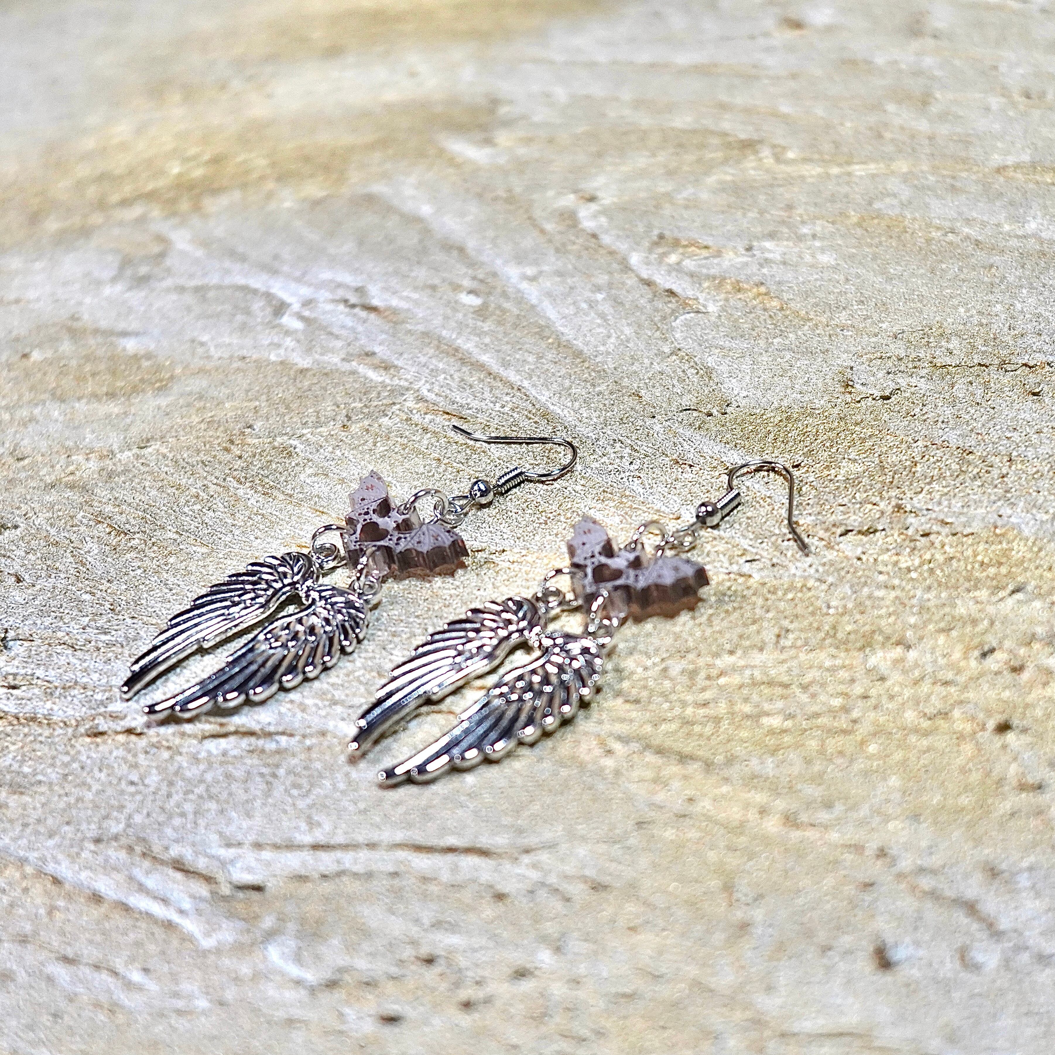 その下に、静かに揺れる天使の羽を添えたデザインです。