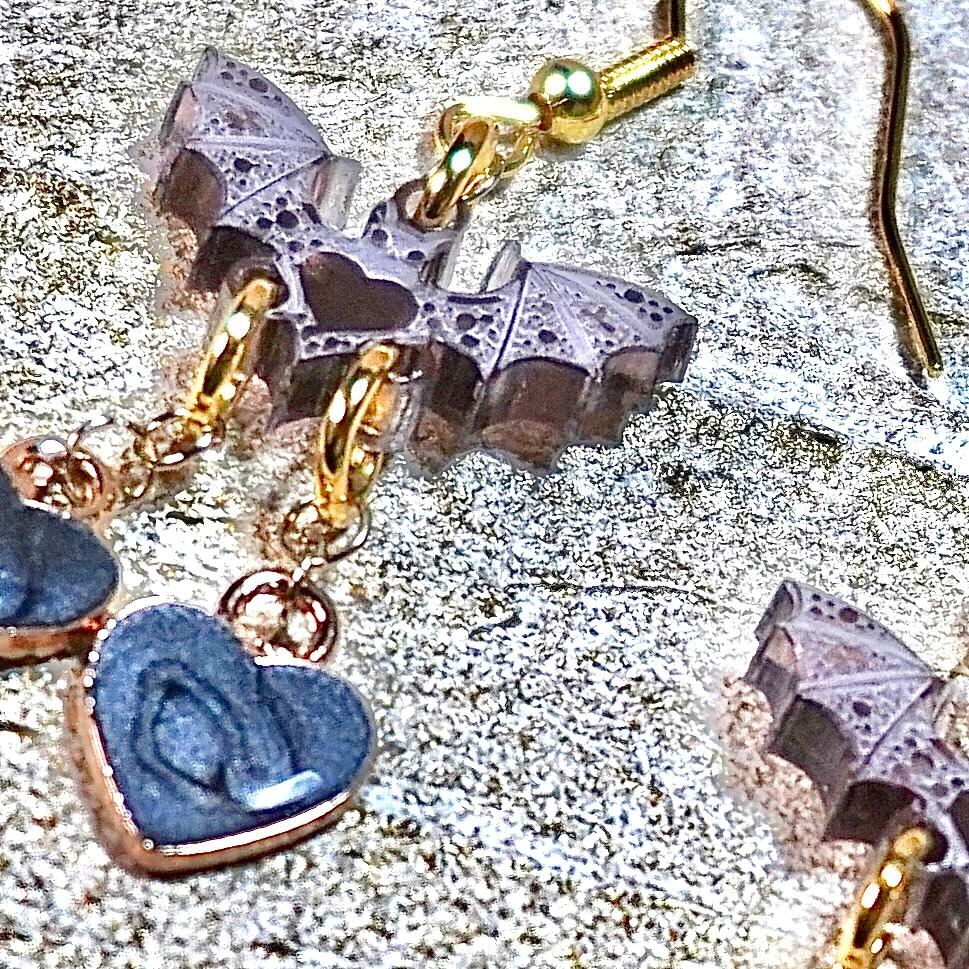 ハートバットミニ&ツインハート(ブラック)ピアス/イヤリング